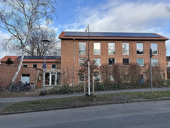 Die Dach-PV-Anlage in Wollershausen steht auf einem Gebäude der "Gesellschaft für Arbeits- und Berufsförderung (GAB) Südniedersachsen", die dort eine Unterkunft für Geflüchtete betreibt, in der über 100 Menschen wohnen.